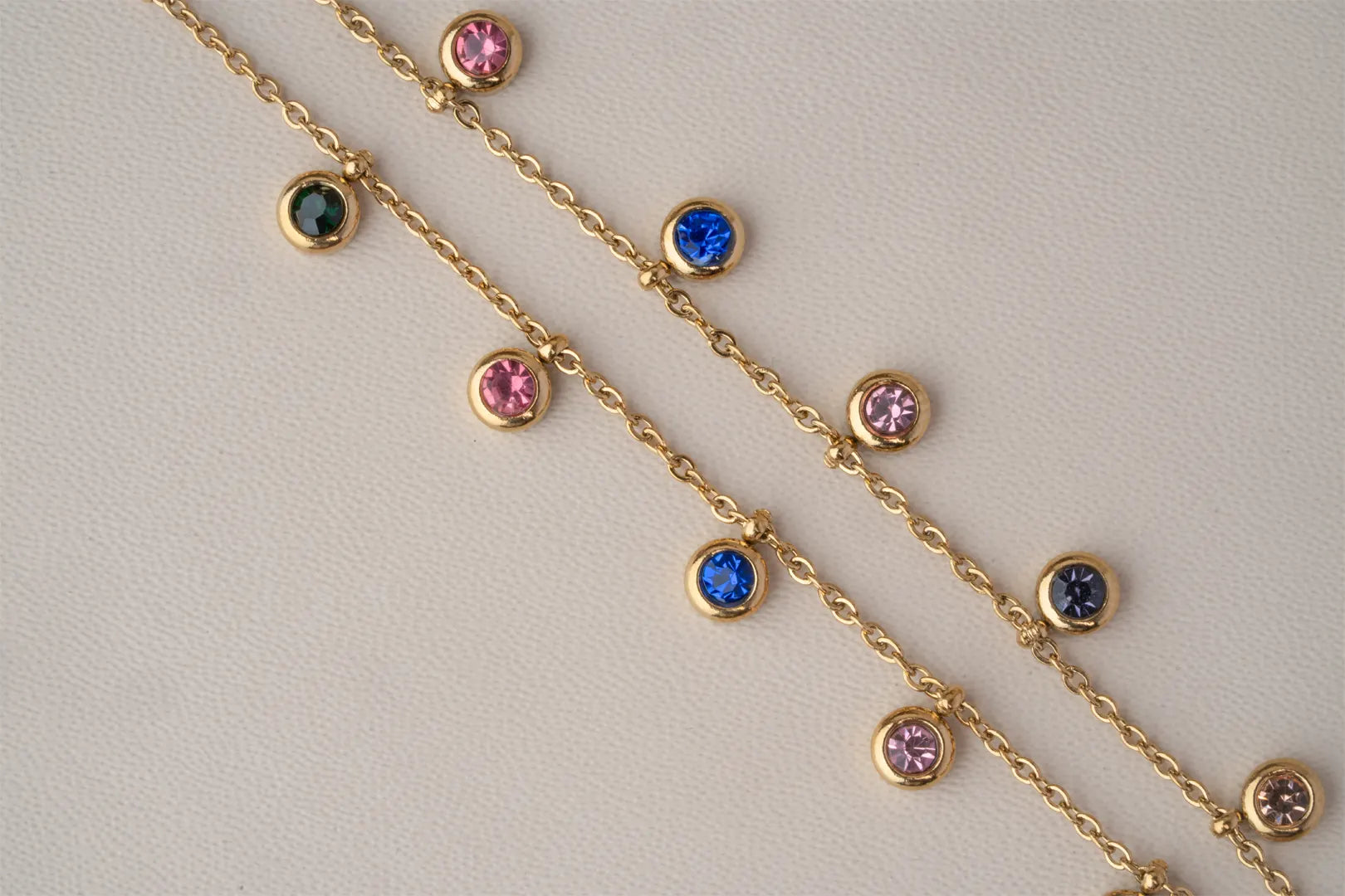 A burst of color and joy! This necklace features dainty multicolor stone charms that shimmer with every move. Fun, fresh, and made to glow — the perfect everyday accessory for a pop of personality.